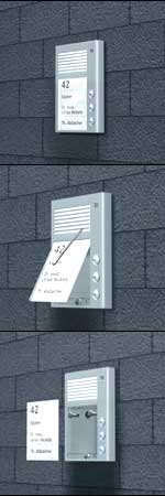 | La sécurité également.... Un habillage design de la ligne PAK associé au verrouillage win:clip de la plaque nominative suppriment la visserie apparente. L’accès facile à l’électronique par un système de verrouillage ingénieux procure aux platines d’appel PAK une garantie anti-vandale.