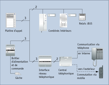 Platine d’appel • Simple appui sur une touche • Mise en relation directe (conversation) • Affectation de plusieurs platines pour chaque combiné · en standard 3 platines d’appel · par terminal service jusqu’à 57 platines